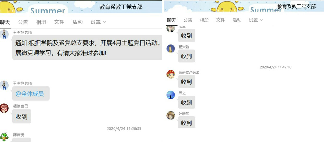 为充分发挥战斗堡垒作用,克服困难、创新形式,丰富主题党日活动,确保疫情期间党员教育不放松、不掉线,教育系教工党支部结合实际,依托钉钉视频会议于4月24日组织开讲主题为“疫情期间党员教师如何发挥先锋模范作用”线上微党课,党课由教工支部书记王李艳主讲,教工支部全体党员积极参加了此次学习。