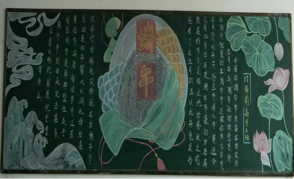此次黑板报主题创作活动,学生们通过搜集有关端午节的历史起源、节日习俗、历史名人、诗词歌画等方面的资料,设计出了内容丰富、构图合理、颜色鲜明、整体效果良好的黑板报。