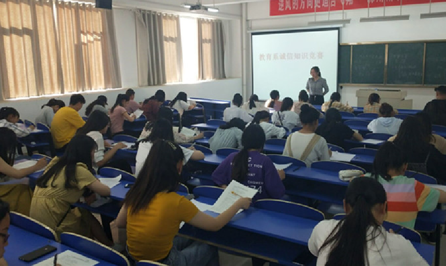为增强大学生诚信意识,宣传国家和学校各项资助政策,倡导诚实守信、勤俭节约等传统美德,综合提高大学生基本素质,强化资助育人工作成效,522日下午课外活动时间440分,在C12204公共教室,教育系举办了诚信要先行,筑梦滁城院诚信知识竞赛活动。2015级、2016级、2017级和2018级学生代表参加了比赛。