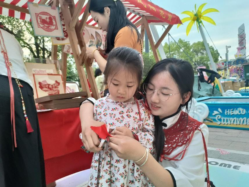 5月10日晚,由南谯区新时代文明实践中心、区委宣传部、区委政法委及银花街道办事处主办的南谯区“谯梁夜市”双提升专场在万达广场正式开幕,教育学院非遗剪纸工作坊受邀参展,校内负责人黄红艳、王静及校外指导专家陈海珍作现场指导。