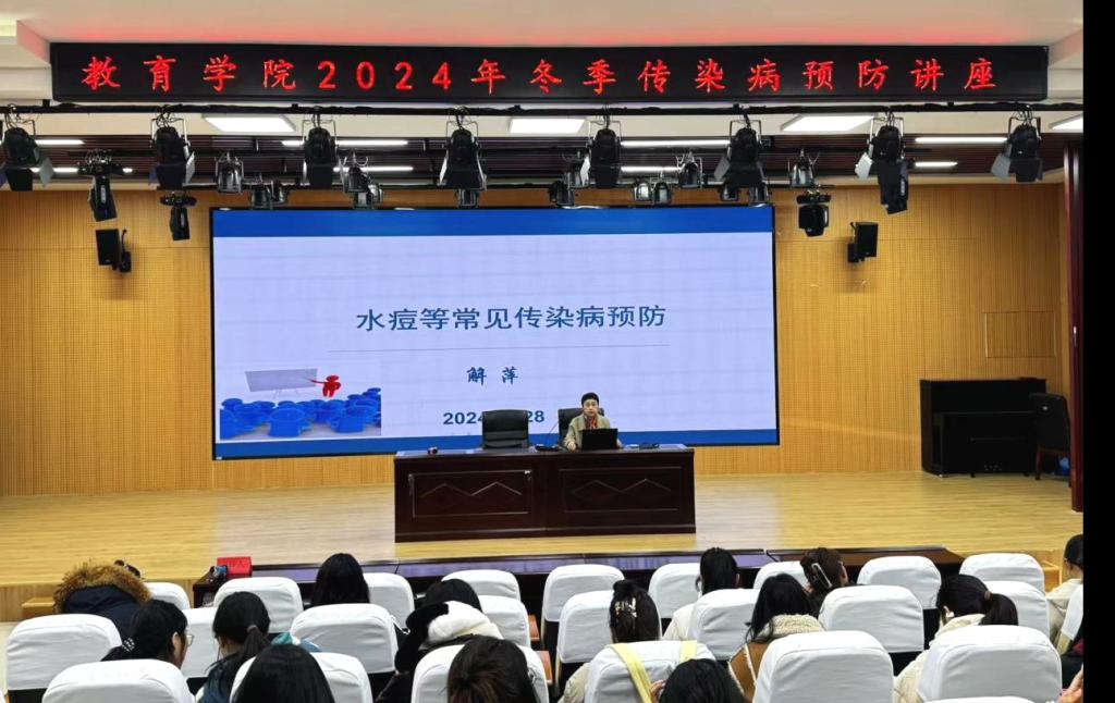 为增强学生传染病防控意识,提高自我防护能力。11月28日,教育学院特邀安徽省预防医学会委员,校质量管理中心督导室主任解萍副教授在教育学院报告厅举办冬季传染病预防讲座。教育学院各班生活委员和相关辅导员参加讲座。