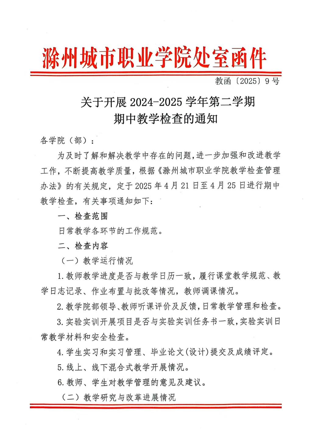 关于开展2024-2025学年第二学期期中教学检查的通知