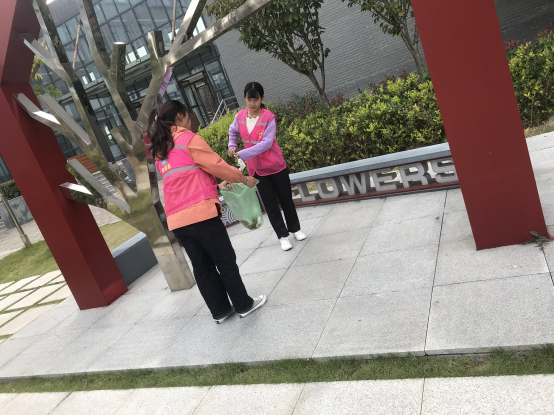 一个人干不了什么事,一群人就能做。志愿者们手持垃圾捡拾器和垃圾袋来到了教学楼旁,她们相互配合,齐心协力,为创建美丽校园而贡献自己的一份力量,每一个认真工作的身影都凝结着一颗为大众奉献的心。
