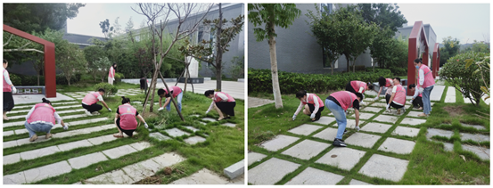 在党支部书记徐立娟的带领下,支部全体党员踊跃参与到铲除草坪杂草的劳动中。在除草过程中,面对行知广场滋生的杂草,大家埋头苦干,徒手拔去混在花树里的杂草,支部全体党员齐心协力,分工合作,人人争先,发扬了不怕脏,不怕苦,不怕累的劳动精神,充分发挥了党员的先锋模范作用。经过大家一个多小时的努力,广场里的杂草被彻底清除了,劳动结束时,虽然大家一身灰尘,但每个人脸上都露出了喜悦的笑容。