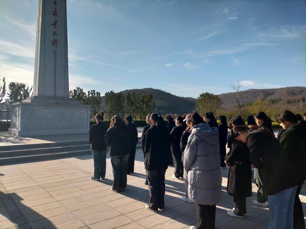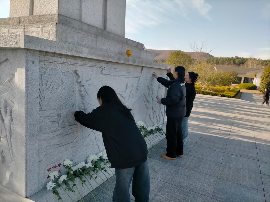 12月8日下午,我院各班级团支书、学生会成员等赴镜园烈士陵园开展纪念活动。在庄严肃穆的革命烈士陵园中,参加活动的全体人员佩戴团徽、列队整齐、庄严肃立。全体人员深深地向革命烈士纪念碑三鞠躬,集体默哀,表达对先烈们深深的哀痛和沉重的悼念。接着,同学们面向团旗,重温入团誓词,邓澄、高宣静同学也在纪念碑下为同学们朗诵了《国家公祭日》诗文,随后全体人员有序围绕革命烈士纪念碑一周,瞻仰革命烈士纪念碑,并敬献手中的鲜花以及在横幅上签名,以表哀思。王旭同学作为代表发言,号召同学们“前事不忘,后事之师”,以史为鉴,面向未来,砥砺前行,把爱国情怀深深镌刻在心底、落实于行动,勇担时代使命,努力报效祖国。活动结束后,同学们自发的擦拭纪念碑、清理周围垃圾。