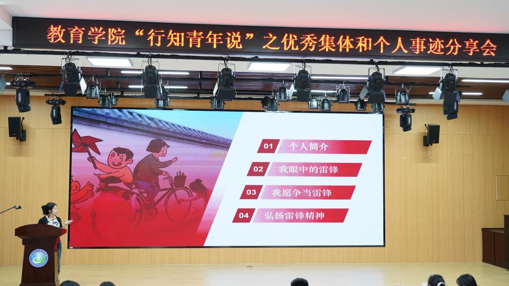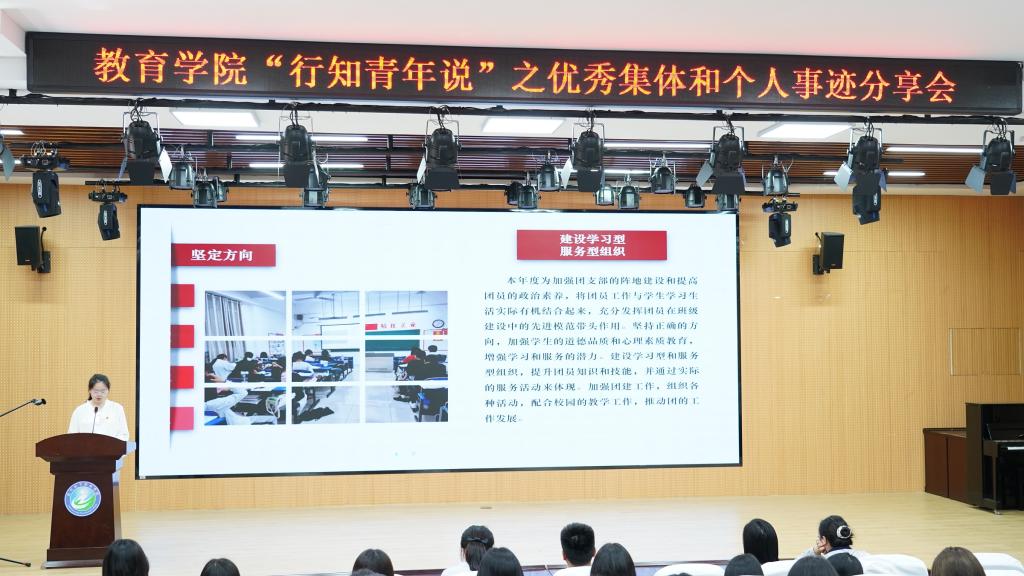 榜样如炬,追光前行。为充分发挥青年榜样的示范作用,树立学习先进、崇尚先进、争当先进的良好风尚,5月22日,教育学院在院报告厅举行“行知青年说”优秀集体和个人先进事迹分享会,本次分享会由获得2023年度校五四好青年、优秀志愿者、身边的雷锋及五四红旗团支部荣誉称号的个人和支部代表主讲,辅导员及各班级学生代表参会。