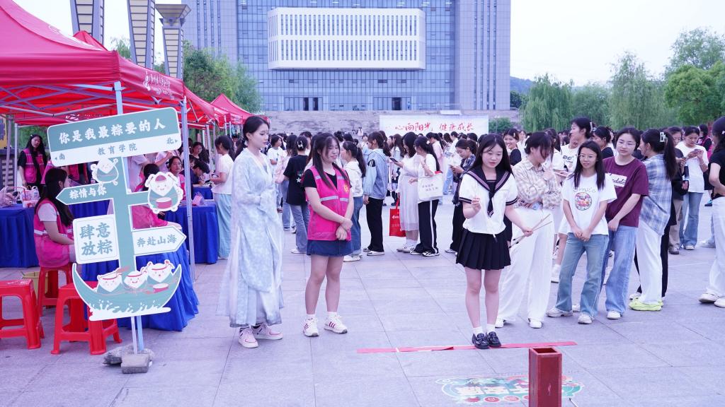 为大力弘扬中华优秀传统文化,充分发挥传统节日思想熏陶和文化教育功能,6月5日,在端午节即将来临之际,教育学院团总支在南广场、食堂等地成功举办了一场别开生面的端午节活动,吸引了广大师生的热情参与。校长汪上等亲临活动现场,饶有兴致地观看和体验各项活动,与师生们亲切互动,对此次活动给予了高度评价。