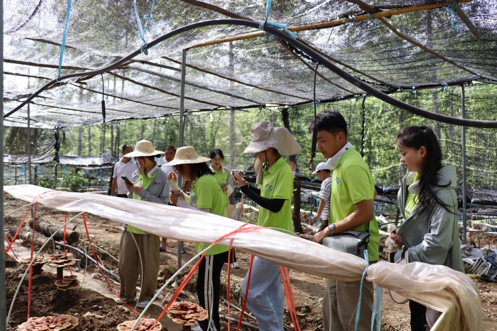 活动期间,实践团走进云乐镇陈岭村的灵芝种植基地,深入了解灵芝的种植、培育与产业发展。据了解,陈岭村于2018年申报了全国“一村一品”灵芝示范村,以林下野生灵芝种植建设项目为依托,大力发展灵芝产业。通过参观,师生们对旌德县在乡村振兴道路上的探索与实践有了更深刻的认识,他们亲身感受着乡村产业的蓬勃活力,触摸到乡村振兴的强劲脉搏。