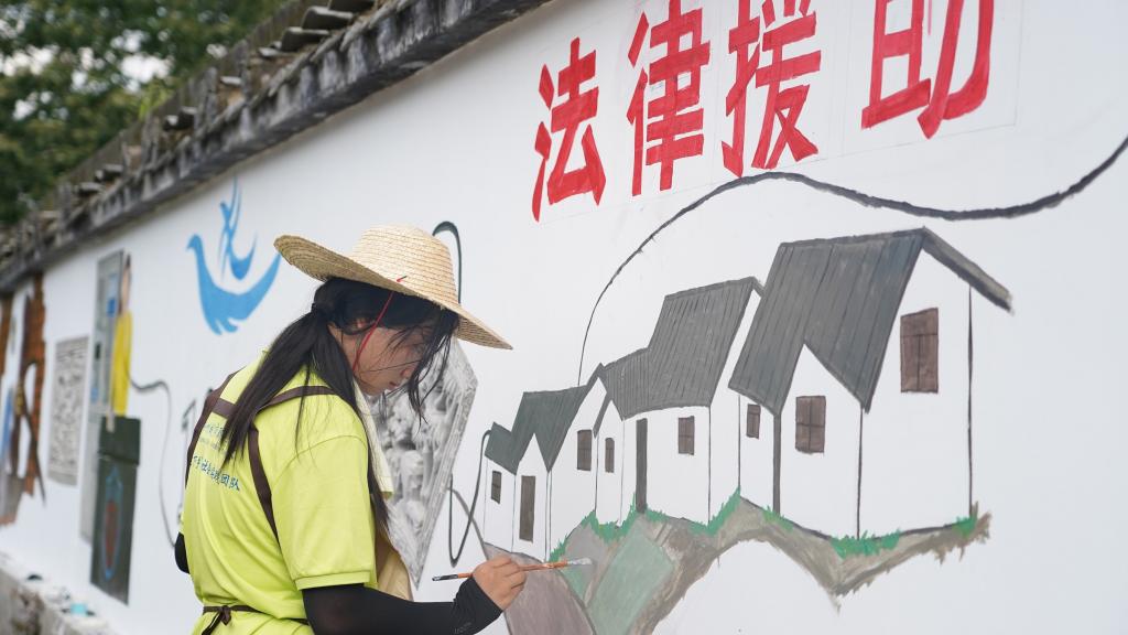 书画七彩墙绘进旌德 助力乡村法治文化建设