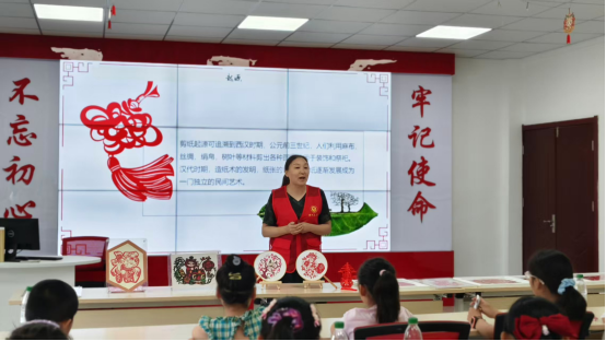 方其琴老师为同学们进行非遗剪纸文化的介绍,从中孩子们能够直观地了解和欣赏感受到传统文化的魅力,了解剪纸的起源、发展以及其中蕴含的民俗文化、寓意等知识,从而增强他们对传统文化的认知和了解。