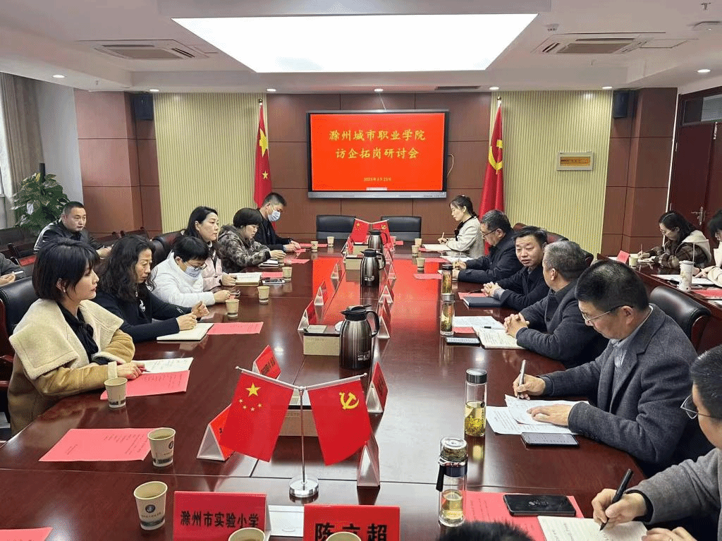 为深入落实教育部办公厅《关于开展全国高校书记校长访企拓岗促就业专项行动的通知》文件精神,进一步拓展学生就业新空间,深化校校(园)合作,推进毕业生就业,3月23日下午,教育学院与滁州市实验幼儿园、第一幼儿园、第二幼儿园、实验小学、琅琊路小学、会峰小学、全椒智慧宝贝、来安艺树幼儿园、映彩泓幼儿园21家用人单位在图文中心第四会议室开展访企拓岗研讨会。校党委副书记、校长汪上、党委委员施向阳、招生就业处处长朱启来,教育学院领导班子成员出席会议,会议由施向阳主持。