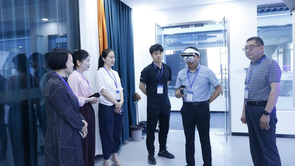 教育学院数智研创团队负责人张凯就我院虚拟仿真实训基地的具体建设情况以及教学项目进行了详细介绍和现场演示。张德余一行深入了解了虚拟仿真技术在人才培养实践应用中的重要性和优势,并亲身体验了我院虚拟仿真课程资源。