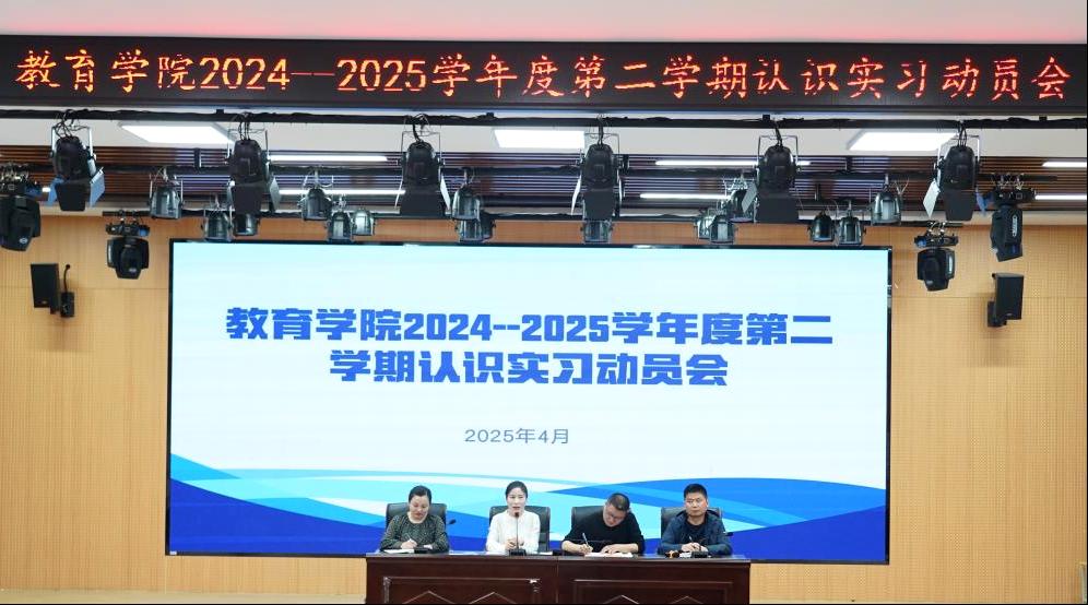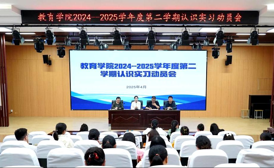 为扎实推进2024-2025学年教育学院学生认识实习工作,明确实习目标与职责。4月21日下午,教育学院在报告厅召开认识实习动员大会。教育学院院长徐立娟,党总支副书记陈立超,副院长刘明辉、袁远,全体辅导员(班主任)及认识实习指导教师参加会议。会议由刘明辉主持。