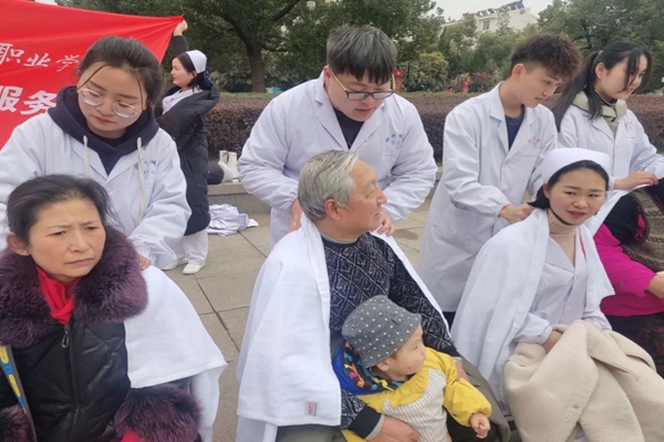 活动现场,我院同学利用所学专业,为市民提供血压测量、保健按摩等便民服务,并细心叮嘱市民日常保健的注意事项,市民们纷纷为我院学子的无私奉献精神点赞。