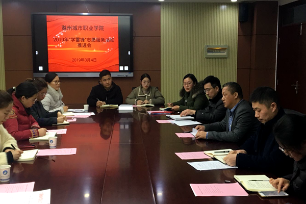 为贯彻落实习近平新时代中国特色社会主义思想和党的十九大精神,积极响应滁州市创建全国文明城市突破年动员大会的工作部署,进一步宣传“奉献、友爱、互助、进步”的志愿精神,3月4日下午,学院组织召开2019年度“学雷锋”志愿服务活动推进会,院党委委员、副院长施向阳出席会议。学生处、院团委、五系党总支书记、五系团总支书记及青年志愿者代表参加会议。会议由团委书记周慧主持。