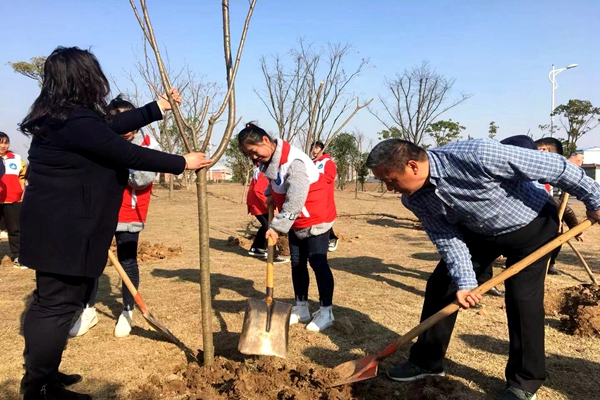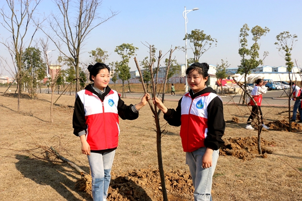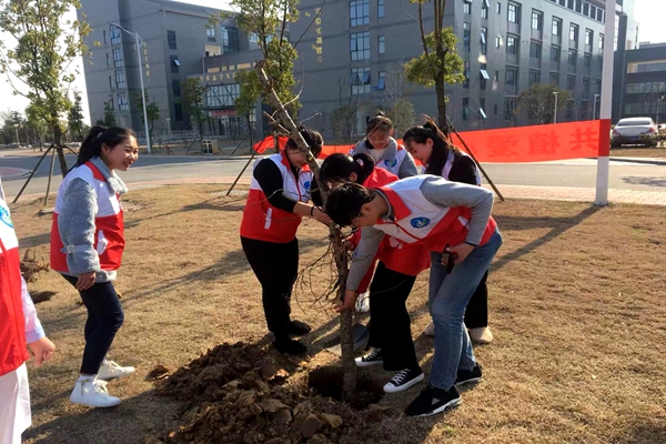 签约仪式后,双方领导带领相关工作人员及志愿者们来到食堂工棚区域的绿化带开展植树活动。活动中,施院长带领志愿者们发扬不怕苦不怕累的精神,他们抡起锄头,握紧铁锹,披荆斩棘,刨土挖宕。更让人眼前一亮的是,植树现场还有来自我院各系的八对双胞胎姐妹,姐妹花们铲土挖坑、挥锹培土、夯实土层、浇水灌根,在植树现场形成了一道靓丽的风景线。近两小时的植树活动中,大家众志成城、团结协作,用辛勤汗水为小树苗浇灌了新的希望,用实际行动为建设美丽亭城作出了新的贡献。