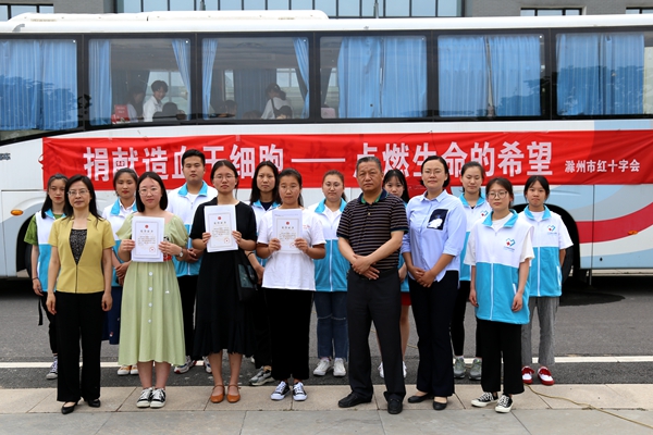 13日上午9点,滁州市中心血站的献血车便抵达活动现场,我院师生踊跃加入献血志愿者的行列,在各采血点,志愿者们有序地填表、验血、采血,采血现场秩序井然。