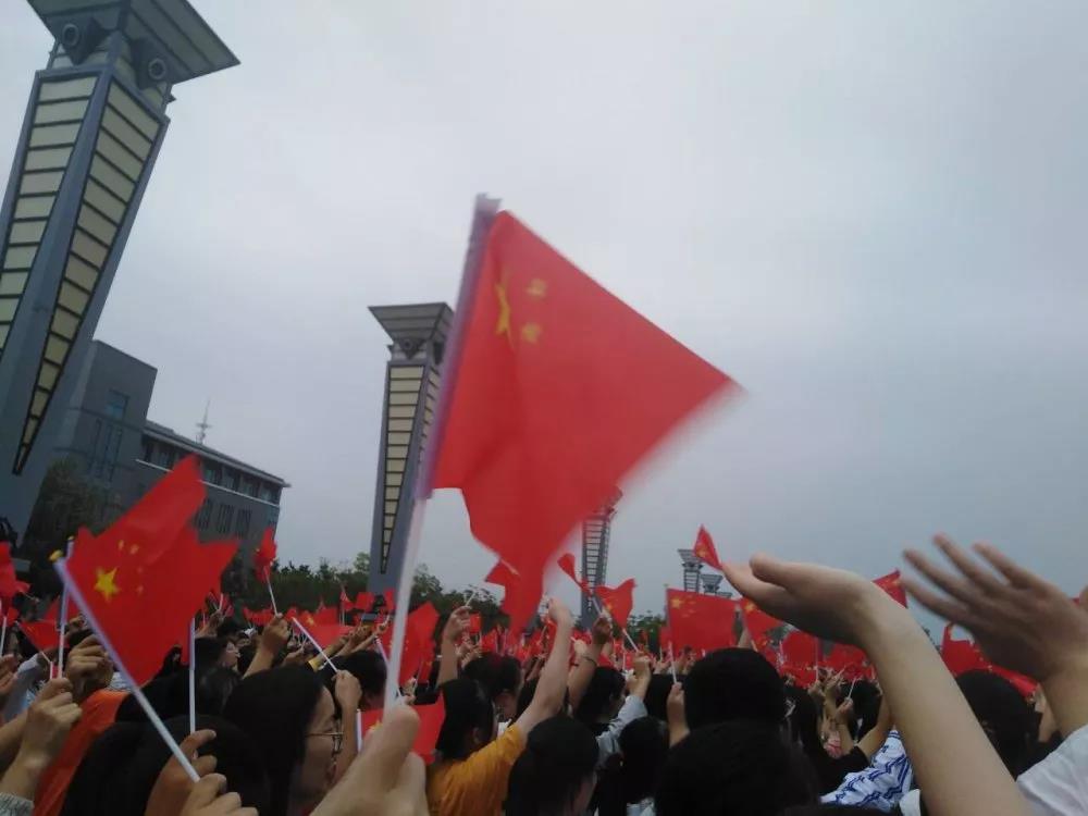 伴随着越来越多的同学加入快闪,一张张洋溢的笑脸,在舞动的国旗下分外灿烂!