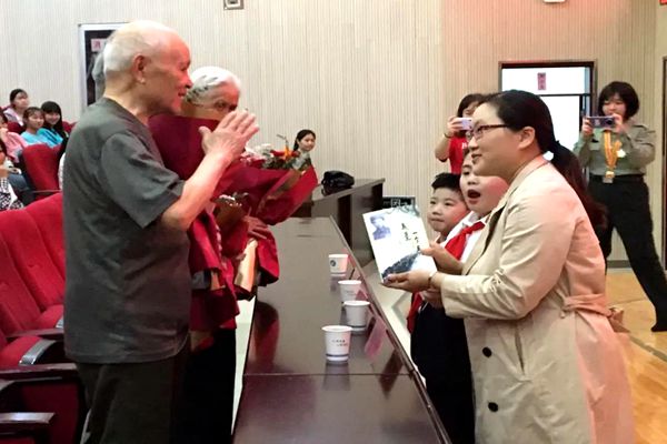 活动伊始,孙静携少先队员向三位老兵献花,表达崇高敬意。