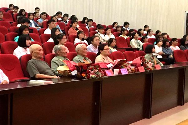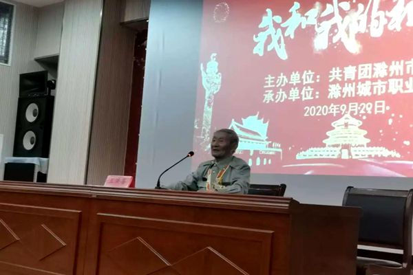 为大力弘扬以爱国主义为核心的伟大民族精神,庆祝新中国成立七十一周年,9月29日下午,由共青团滁州市委主办的共和国故事汇之“我和我的祖国”红色故事主题宣讲活动在我院四楼报告厅隆重举办。年过八旬的抗战老兵王洪喜、新四军老兵严明友、退休军人刘福安亲临现场宣讲,共青团滁州市委书记孙静出席活动。