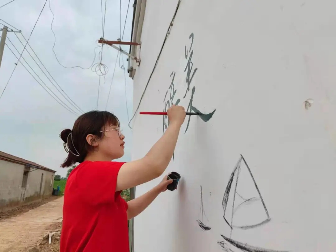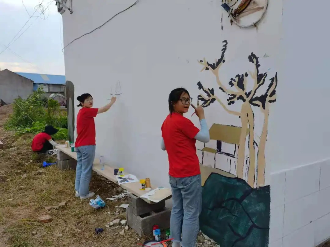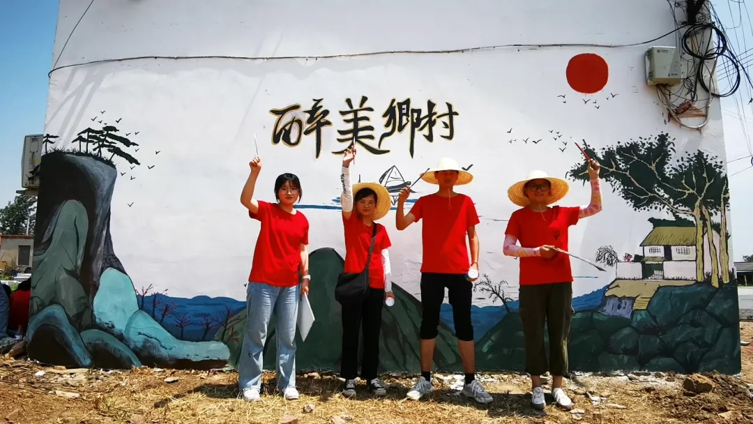 乡村振兴小分队在池河镇池阳村开展户外墙绘活动。大学生以乡村振兴、人居环境整治为主题,结合当地特色,利用自己的专业进行创作。大学生克服酷暑烈日,在坚持不懈的努力下,历时三天,完成《醉美乡村》的墙绘画作,得到当地居民的一致好评!我院大学生将艺术融入乡村生活,真正在社会实践活动中做到“受教育、长才干、作贡献”,为美丽乡村建设贡献青春力量!