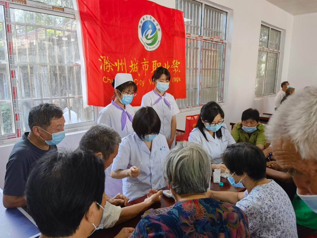 志愿服务小分队分别开展了义诊、义教活动。712日早7:30,志愿服务小分队在指导老师的带领下来到池河镇居委会,为当地村民开展测血压、测血糖活动,参加义诊的师生们同时还向村民们普及夏季保健的知识,得到当地村民的一致好评!