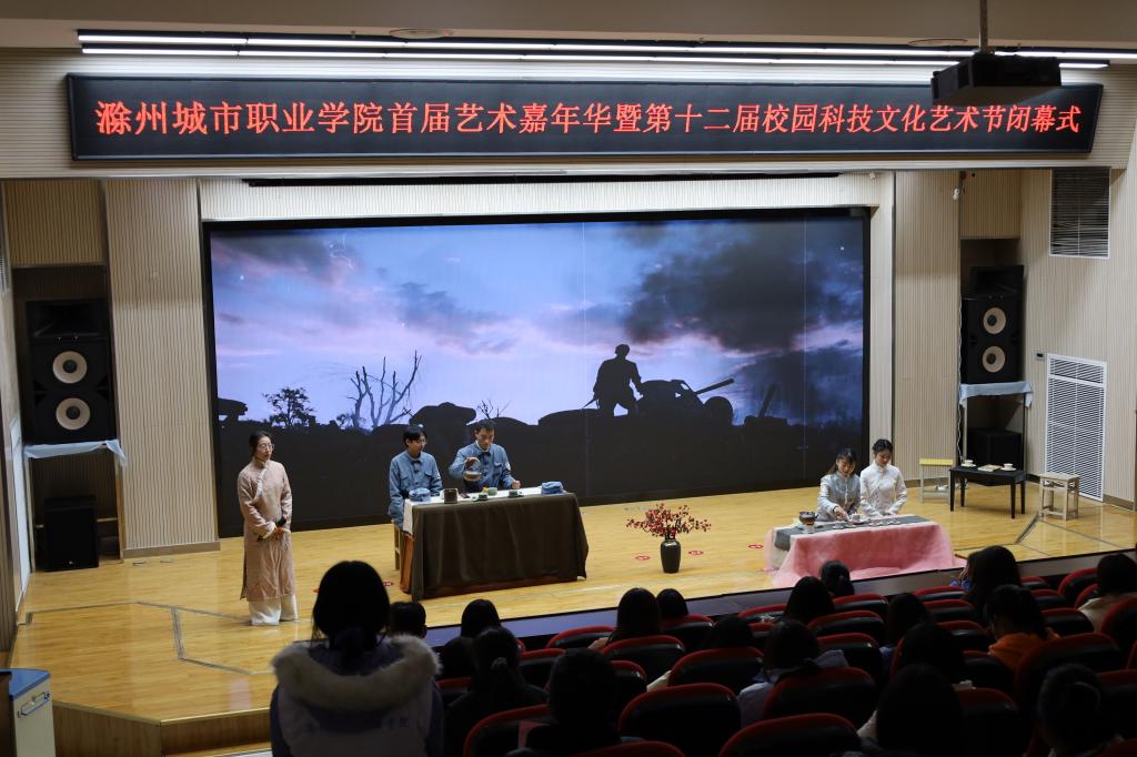 12月20日晚上7:00,我校在图文中心四楼报告厅隆重举办艺术嘉年华暨第十二届校园科技文化艺术节闭幕式。校党委书记张志华,党委副书记、校长汪上,副校长吴惠珍,校党委委员、办公室主任、宣传统战部部长陈通,学生处处长杨如江及各学院党总支负责人出席闭幕式。
