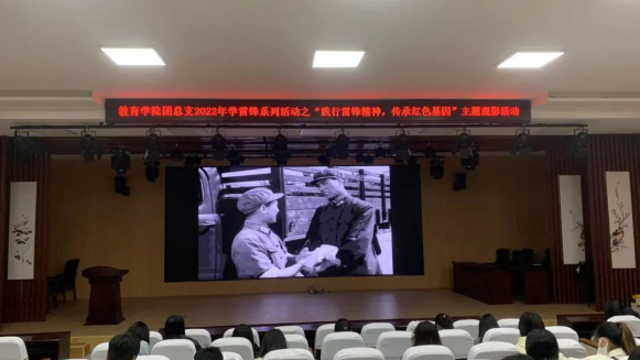在学校报告厅、小剧场及多媒体教室,组织青年学生集中观看《雷锋》、《雷锋的微笑》、《离开雷锋的日子》等影视作品,了解雷锋同志短暂而光辉的一生,引导团员青年传承雷锋精神,增强红色文化自信。