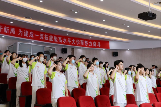 随后,全体志愿者举起右拳进行宣誓,他们用洪亮的声音许下庄重的誓言:倡导文明新风,传播和平友谊,为省运会圆满成功,贡献力量!