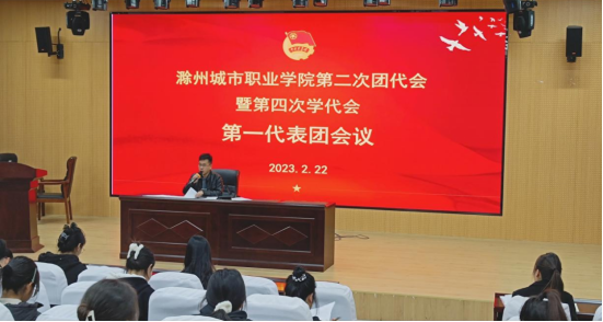 222下午3点,我校第二次团代会、第四次学代会图文中心四楼报告厅召开。校党委书记张志华、团滁州市委副书记郑和园出席开幕式并讲话。校党委副书记牛春雨,校党委委员施向阳,校党委委员、纪委书记程一斌,校党委委员、副校长吴惠珍,校党委委员、学生处处长杨如江,滁州职业技术学院团委书记甄帅出席开幕会,应邀出席开幕会的还有各学院党总支书记,全校124名代表参加会议,会议由校团委副书记陈婷婷主持。