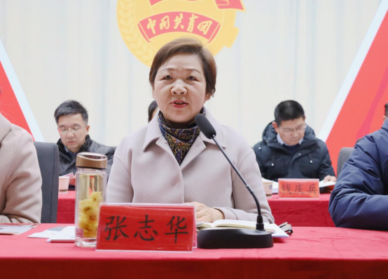 张志华在讲话中寄语全校团员青年要树立远大的志向,勇挑重担、甘于吃苦、乐于奉献、勤于实践,在实践中学习、在实践中提高、在实践中成长。勤奋学习,刻苦锻炼,积极投身到学校和社会的各类实践活动中去,自觉担当实干,争做时代先锋,为构建绿色校园、文明校园、和谐校园作贡献。