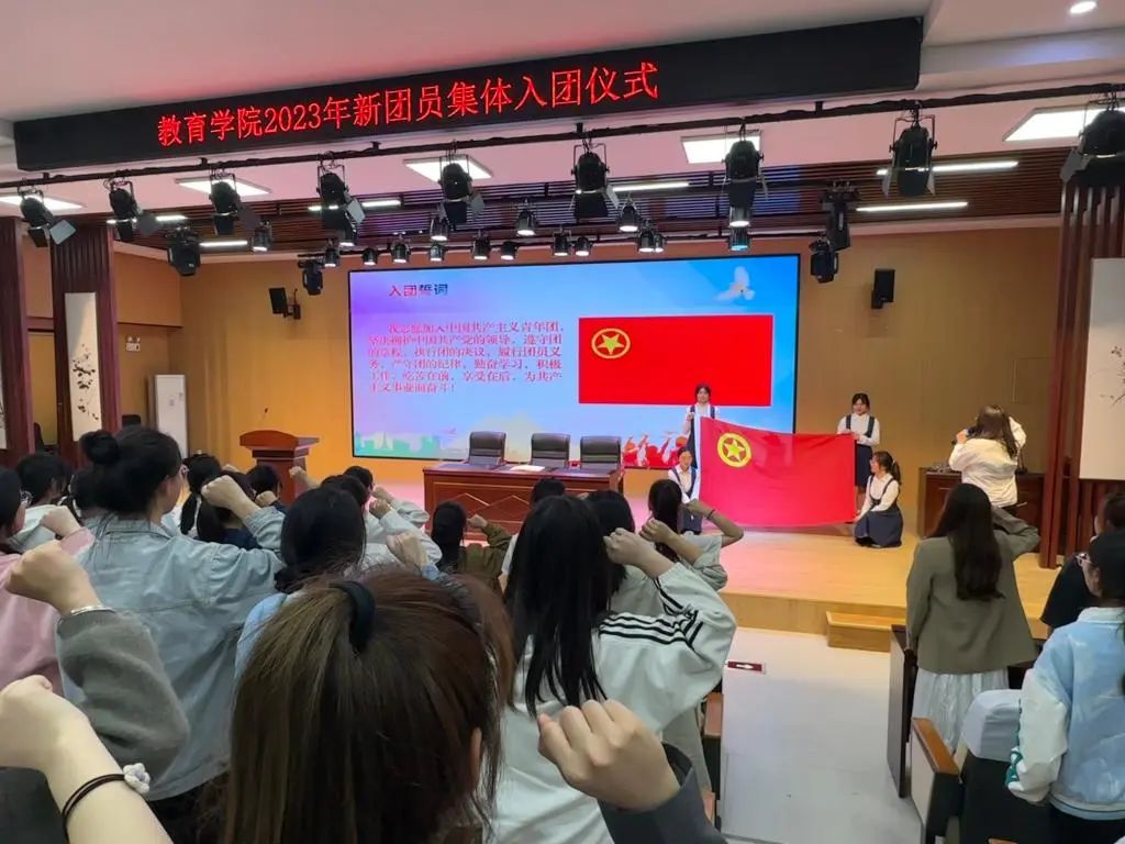 为引导广大团员青年继承和发扬“五四”精神,厚植爱党爱国情怀,切实增强共青团员的责任感、使命感、荣誉感,学校各二级学院在五四前夕纷纷举行新团员集体入团仪式。通过颁授团徽、团员证,领学《中国共产主义青年团章程》,优秀团员故事分享,合唱团歌等仪式,让每位新团员感受加入中国共产主义青年团的光荣与责任。最后,在鲜艳的团旗下,全体新团员庄严宣誓:“我志愿加入中国共产主义青年团……”青春洪亮的声音,铿锵有力的誓言,彰显着新时代青年的青春热血与为团组织事业贡献力量的坚定信念。