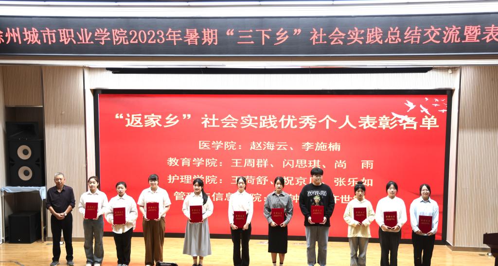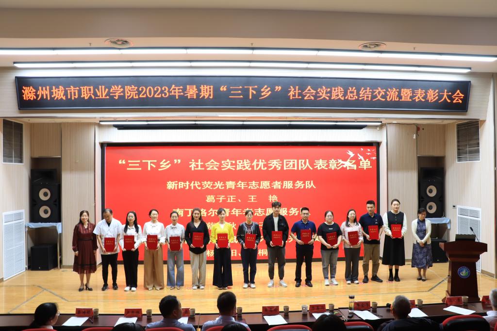 随后,杨静怡宣读“三下乡”社会实践优秀团队指导老师、“三下乡”社会实践优秀个人、“返家乡”社会实践优秀个人、“三下乡”社会实践优秀调研报告获奖人员名单,出席领导依次为获得表彰的师生颁奖。