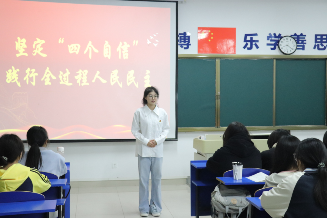 我校积极组织师生参加《坚定”四个自信”---全过程人民民主》主题团课,在传达学习习近平总书记在全国两会期间的重要讲话精神和全国两会精神的同时,帮助团员们深入理解“四个自信”的内涵,明确全过程人民民主的重要性,提高团员们更加坚定听党话、跟党走的思想政治觉悟,增强“四个自信”。