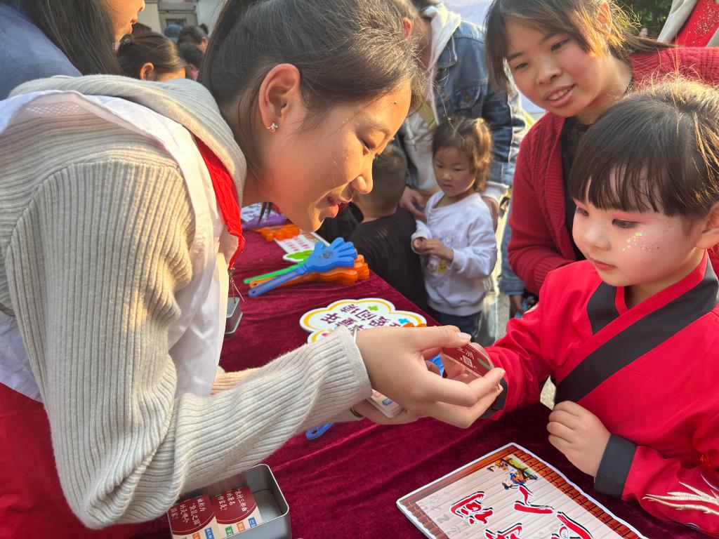 在“知识问答”环节,我校志愿者们准备了形式多样的互动题目,包括“飞花令”、成语接龙、诗词大会和猜书名等,吸引了众多群众参与。展现了我校学子的社会责任感和奉献精神。