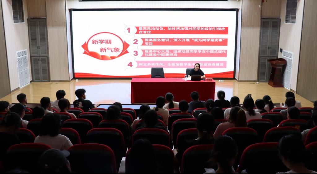 9月4日下午,校团委召开新学期学生干部工作会议暨学生骨干培训会。校院两级学生会骨干、团支部书记、青年志愿者服务队、社团负责同学等200余名学生干部参加会议,会议由校团委书记陈婷婷主持。