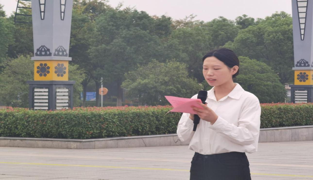 医学院学生代表献上朗诵《青春致敬祖国,礼赞盛世华诞》,歌颂祖国走过的七十五载灿烂征程,表达传承英烈精神、汲取奋进力量的坚定信念。