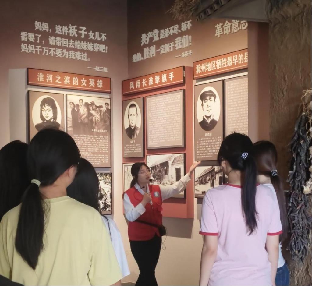 5月7日下午,医心向党讲解社团的同学们走进滁州革命纪念馆,开展爱国主义教育活动。活动中,同学们在纪念馆讲解员的带领下,依次参观了“信仰召唤 点燃星火”“初心激荡 革命狂飙”“铁血御侮 民族脊梁”“丹心破晓 迎接解放”四大主题展区。馆内丰富的图片、文字、实物,结合雕塑、场景复原与多媒体互动,生动展现新民主主义革命时期,中国共产党领导滁州人民争取民族独立、人民解放的奋斗历程。同学们驻足凝视革命先辈用过的武器、衣物与信件,深刻感悟其坚定信念与奉献精神,相互交流参观感悟。
