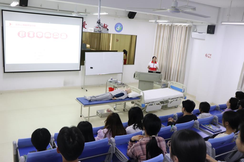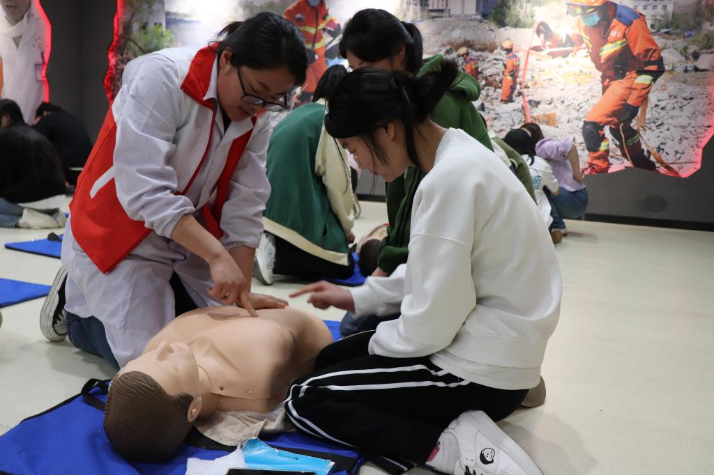 理论学习结束后,10位专业老师分别利用模型讲解并示范了心肺复苏的操作步骤与要点。现场师生参与互动积极体验心肺复苏操作,大家反复练习、不断纠正各环节的姿势、手法,确保动作标准、力度到位。