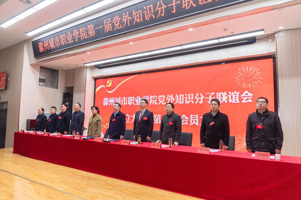 大会在雄壮的国歌声中拉开帷幕。滁州市知联会副会长邓泽军对学校知联会的成立表示热烈祝贺。他希望学校知联会充分发挥桥梁纽带作用,把党外知识分子团结起来,为推进学校一流技能型高水平大学建设建言献策。
