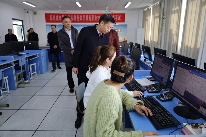 职业院校技能大赛是国家职业教育的重大制度设计与创新,是推动职业教育高质量发展的重要举措。为了全面了解选手的参赛准备情况和存在的问题,切实为参赛选手做好保障,3月10日上午,党委副书记、校长汪上,党委委员、副校长曹士东,教务处处长王树青等学校领导前往各赛项集训现场督查指导。