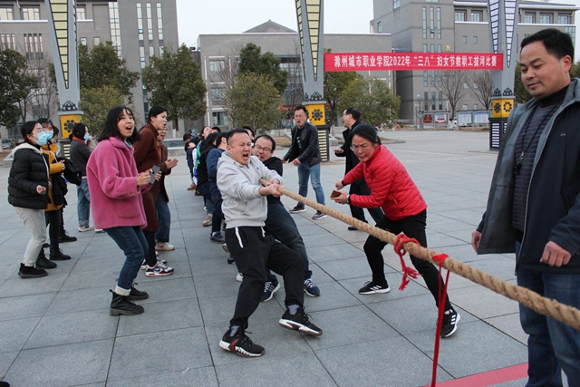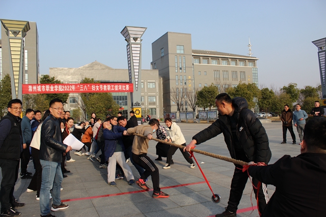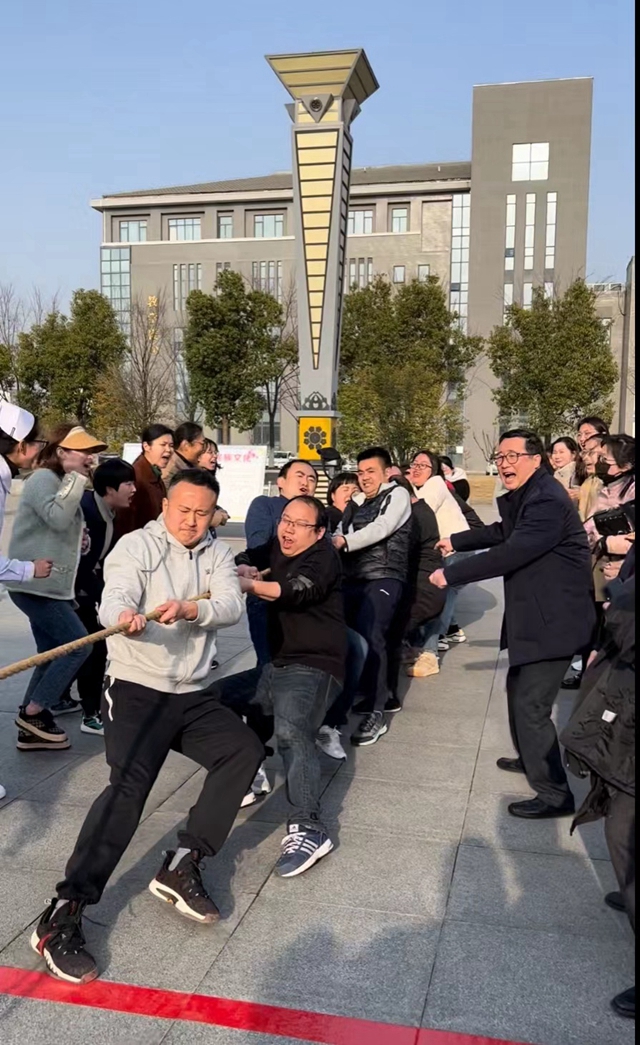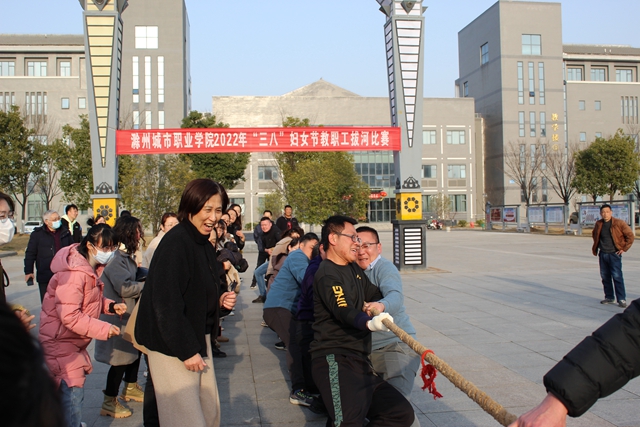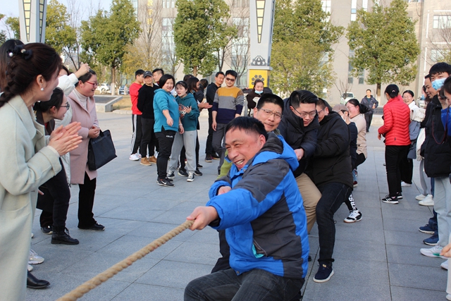 3月2日下午,我校工会在图文中心南广场举行2022年教工拔河比赛,校领导施向阳宣布首场比赛开赛,来自八个分工会的参赛队员及拉拉队近400人参加了活动。