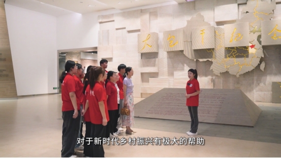 实践团队将“大思政课”作为必有途径,深入挖掘实践活动中的思政元素,推动思政课一体化建设,参观凤阳县小岗村沈浩同志先进事迹陈列馆、大包干精神纪念馆、旌德县“谭梓生烈士纪念馆”等红色印记,教师指导学生进行“98抗洪精神”、“三千孤儿入内蒙”、小岗村《在热土中奋进 在变革中新生》等微党课制作与拍摄,发挥教师课程育人的主体作用,切实把思想政治教育贯穿于教学实践的全过程,实现协同育人。此外,各实践团队积极对实践成果进行再挖掘、再利用,融古典文化、幼小教育、艺术设计、思政育人于一体,从而提高社会实践对课堂教学的融入性。
