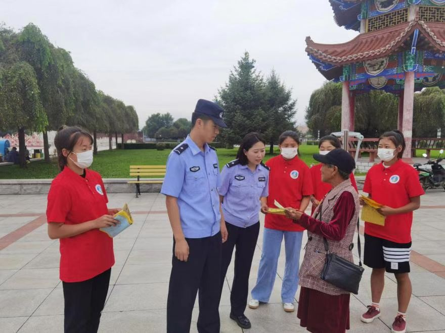此外,为提升当地居民对电信网络诈骗的防范意识,实践队还联合科右中旗城南派出所,与民警一起在抗洪广场用普通话进行防诈骗宣传,还热心地帮助老年人下载“国家反诈中心APP”,受到当地百姓的欢迎和好评,产生了积极的社会影响力,为推动国家通用语言文字和推广和普及贡献出自己一份青春的力量。
