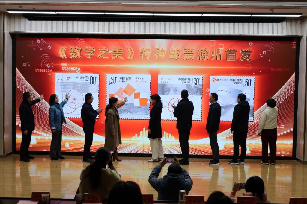 3月14日,由我校承办的《数学之美》特种邮票滁州首发仪式在图文中心四楼报告厅举行。滁州市政协副主席李世平,滁州市邮政管理局党组书记、局长缪华春,滁州市邮政分公司党委书记、总经理万顷,滁州市委宣传部机关党委书记乐世万,滁州市科技局党组成员、副局长黄静,滁州市文化和旅游局四级调研员黄翠芳,滁州市邮政分公司党委委员、副总经理叶红春,我校党委书记王燕永,党委副书记牛春雨出席仪式,相关部门负责同志及各学院学生代表、演员、志愿者300多人齐聚,共同见证邮票首发。