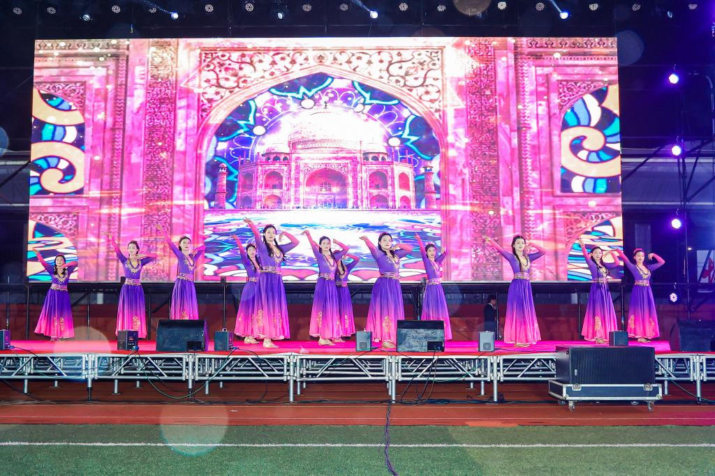 教育学院郭江老师带来原创校园歌曲《给生活加油》,用真挚情感传递成长力量;维吾尔族舞蹈《巴郎仔》和古典舞《幻世长安》以曼妙舞姿展现中华文化的绚烂多彩。