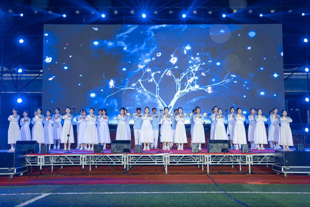 晚会在全体师生合唱《我爱你中国》的歌声中落幕,挥舞的闪光灯如星河般点亮整个运动场,爱国主义情怀充盈在每个人心头。