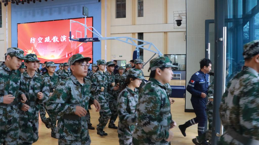 适逢九一八事变爆发94周年,活动伊始,现场播放教育视频并集体默哀,重温习近平总书记在纪念中国人民抗日战争暨世界反法西斯战争胜利80周年大会上的重要讲话精神,并进行防空疏散演练。