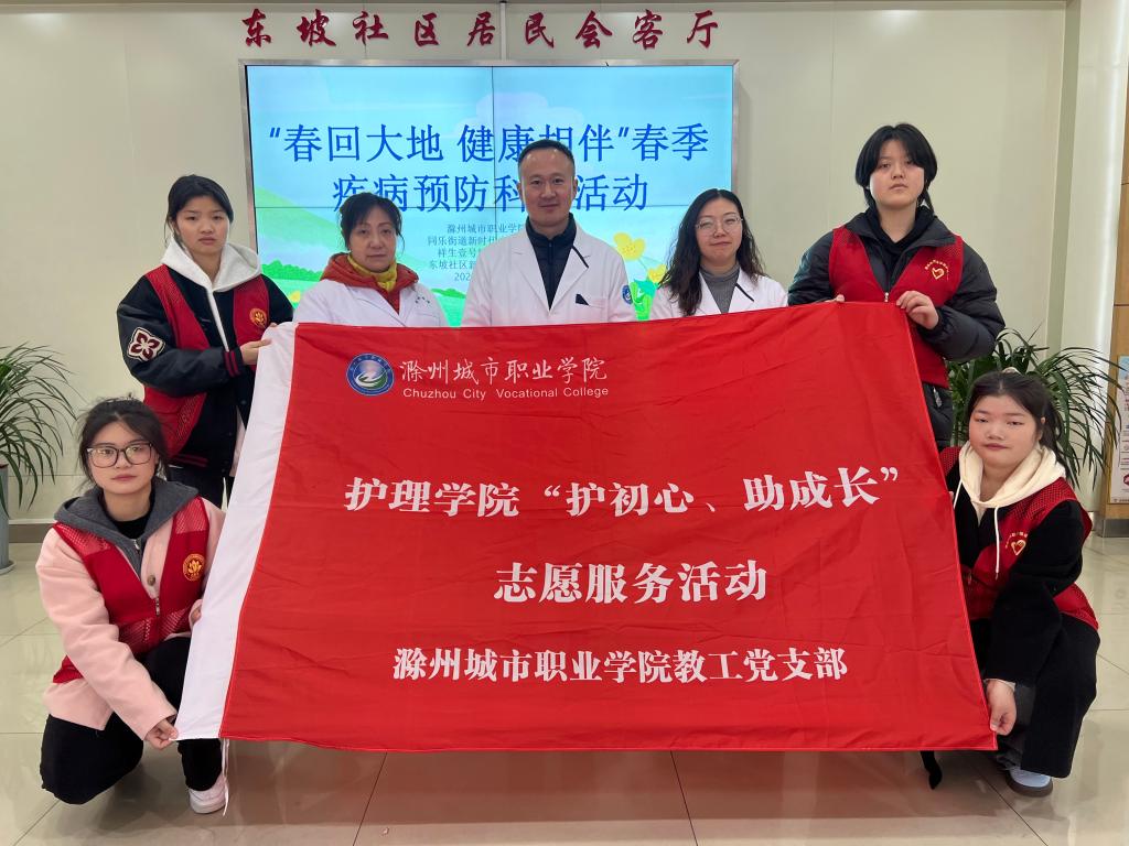 为响应国家卫生健康号召,普及春季疾病预防知识,提升居民健康意识,2月20日,护理学院教工党支部携手东坡社区开展“春回大地健康相伴”春季疾病预防科普活动。通过健康宣教、义诊服务、急救技能培训等形式,为社区近200位居民提供全方位健康支持,党员教师以实际行动践行“奉献、友爱、互助、进步”的志愿服务精神。针对春季高发的流感、诺如病毒感染、手足口病等疾病,护理学院党员教师与志愿者结合专业特长,向居民详细讲解...