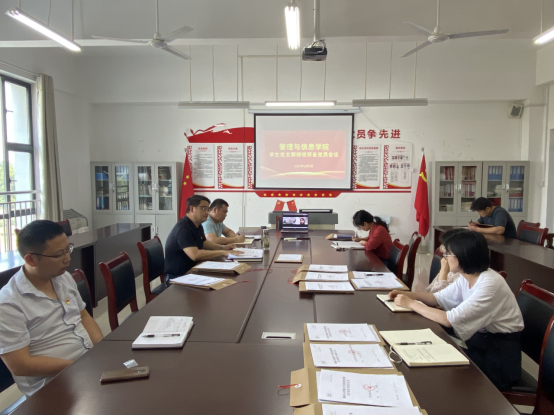 6月8日下午3点,管理与信息学院学生党支部召开支部党员大会,由于16位学生发展对象皆在异地实习,按照疫情防控的要求,会议依托腾讯会议软件,通过视频会议的形式,支部党员在学院二楼会议室审议李梦茹、王姗姗、张柳、夏乐、孙楠、孙颖、马晴晴、黄梅梅、张芸、吴倩倩、李梦可、杨子悦、许子衡、蒲聪燕、卢灿娟、吕姚和夏慧共17位同志由发展对象转为预备党员的相关事宜。管理与信息学院学生党支部应到会有表决权党员8名,实到...